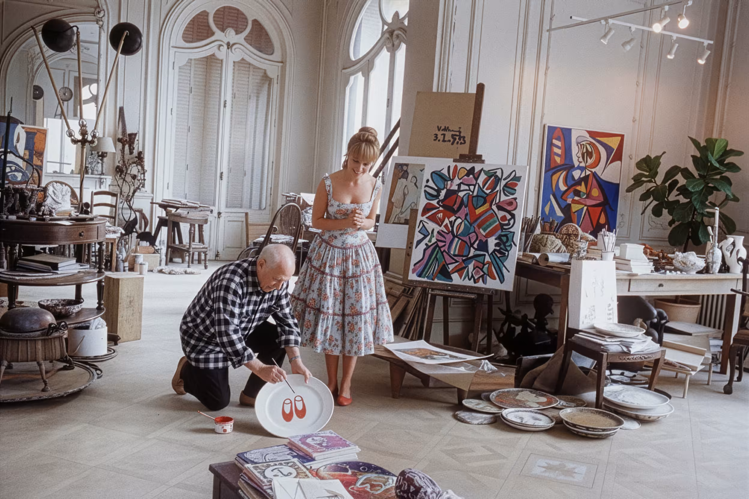 Mientras la actriz se movía por el taller, entre piezas de cerámica, herramientas y miradas, Picasso reparó en el calzado. Tomó entonces dos platos blancos de Vallauris y, con unos pocos trazos rojos, dibujó sobre cada superficie una variación mínima de aquellas bailarinas. Dos versiones de un mismo impulso. Un gesto rápido, íntimo, casi juguetón, que quizá no aspiraba a nada más que a fijar un destello, pero que terminó conteniendo mucho más: el encuentro entre un artista que convertía en obra cuanto tocaba y una figura que encarnaba el porvenir visual y cultural de su tiempo.