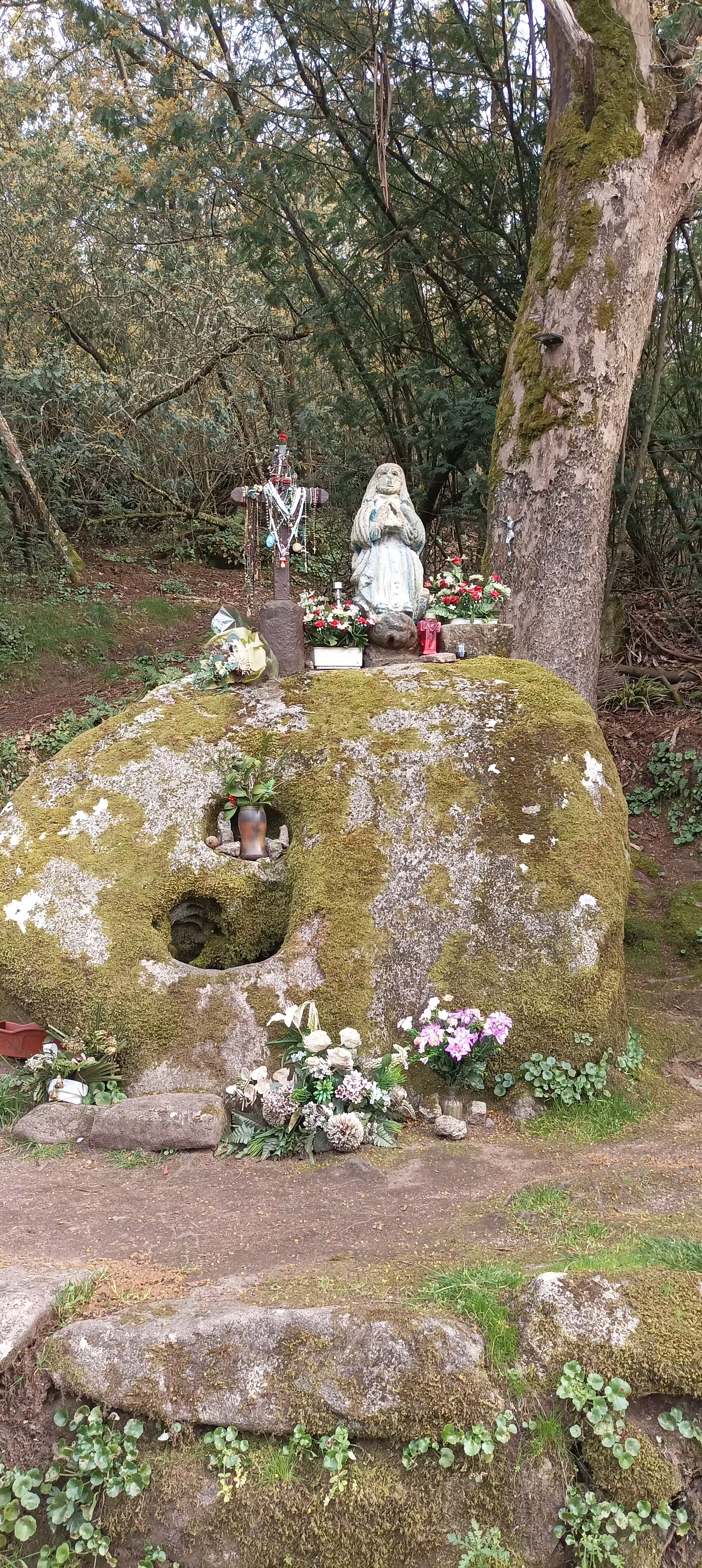 Vivo en un valle sincrético. Cada roca, cada árbol, cada fuente, están impregnados de una vieja leyenda que resuena en los charcos y en la hierba, de tan pronunciada y adorada. Todo está ligado a ella, como si este fuera un lugar sagrado ancestral que sigue latiendo desde muy abajo y sobre el que se hubiera superpuesto una capa de fe profunda e irracional, que no cuestiona los mitos, sino que adora desde las entrañas. En este lugar te sientes bien. Y en cada uno de sus nodos, la ermita, la piedra sagrada, la cripta de la santa, te sientes extrañamente bien. Aunque traigas el corazón agitado de los mil asuntos agitantes de la vida de superficie, esta vida subterránea sale al reencuentro como un consuelo silencioso. Es como si todos los adoradores previos y las antiguas ninfas estuvieran agazapados para confortarte. Fui descubriendo toda esta cosa legendaria en paseos sucesivos por estas carballeiras. Pasear por el bosque se siente parte de una conversación. Es un bosque que cada vez es más bosque, toda vez que las viejas huertas se han ido abandonado como se abandonaban las aldeas y los árboles han seguido su procesión implacable, recobrando el espacio que antes domesticaba el hombre. Si uno lo decide, aquí se consigue escuchar el sonido del mundo de antes del mundo.