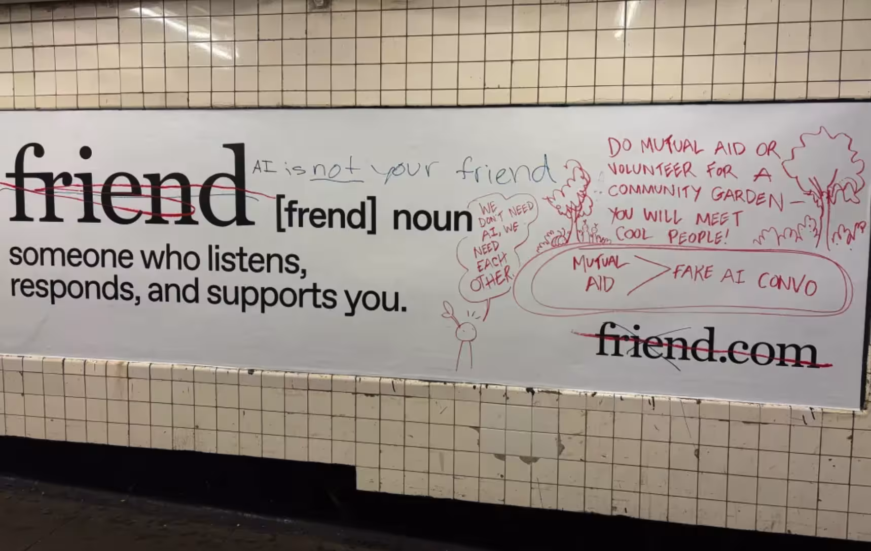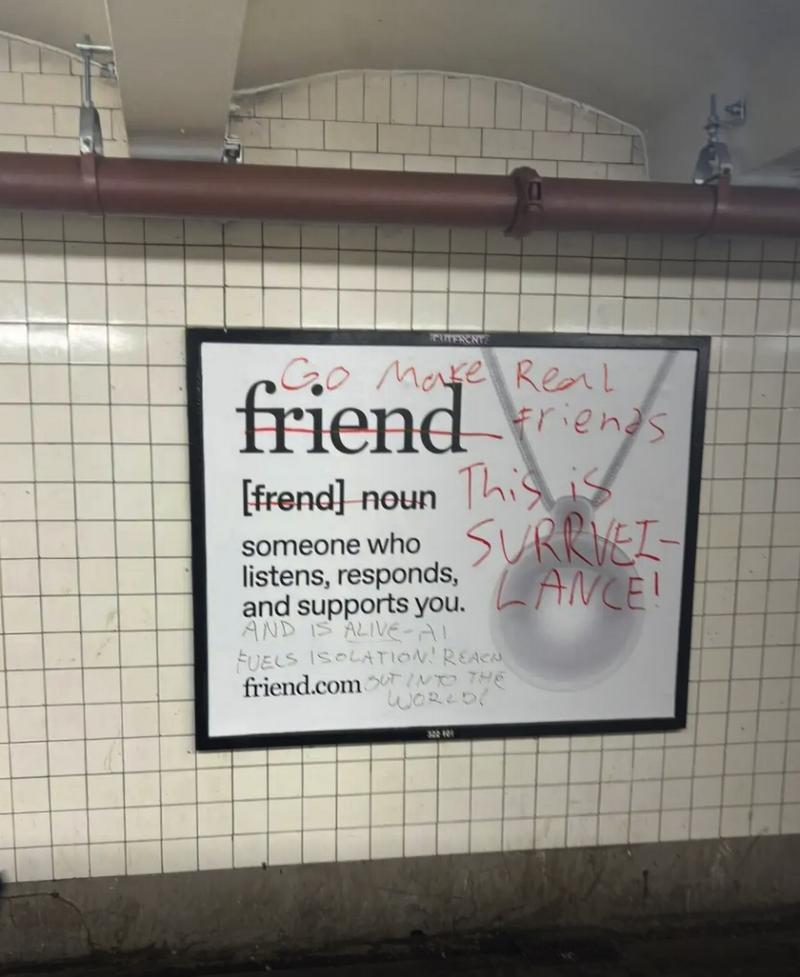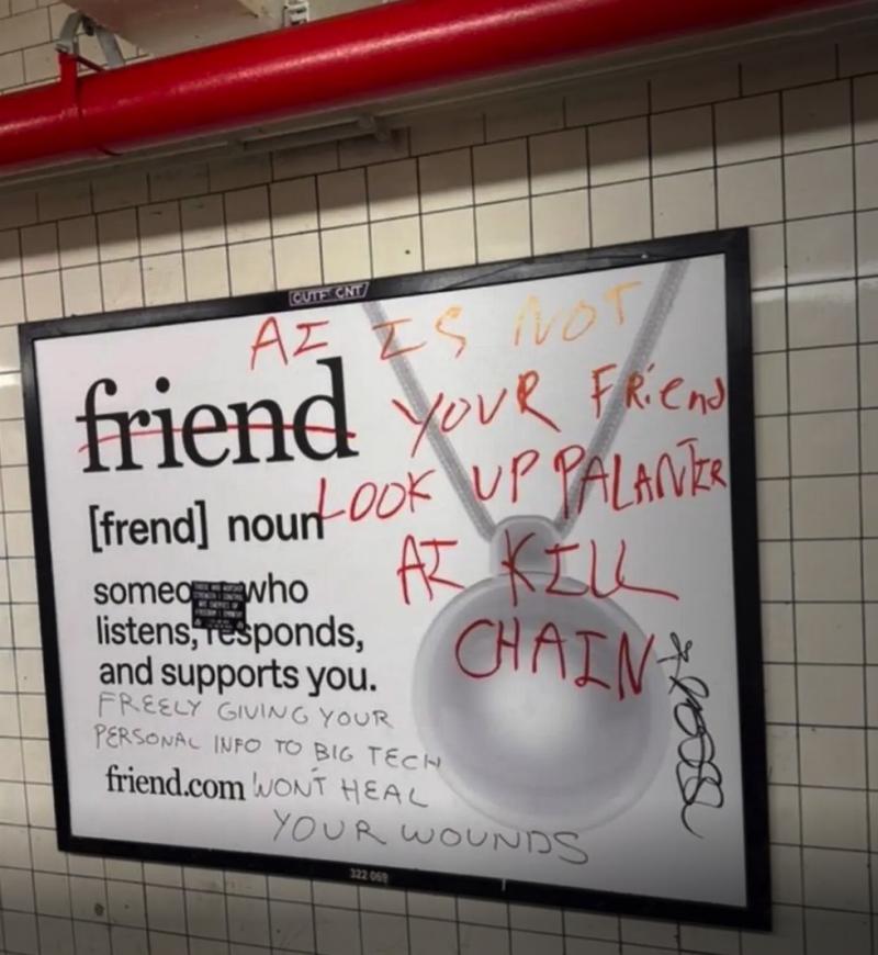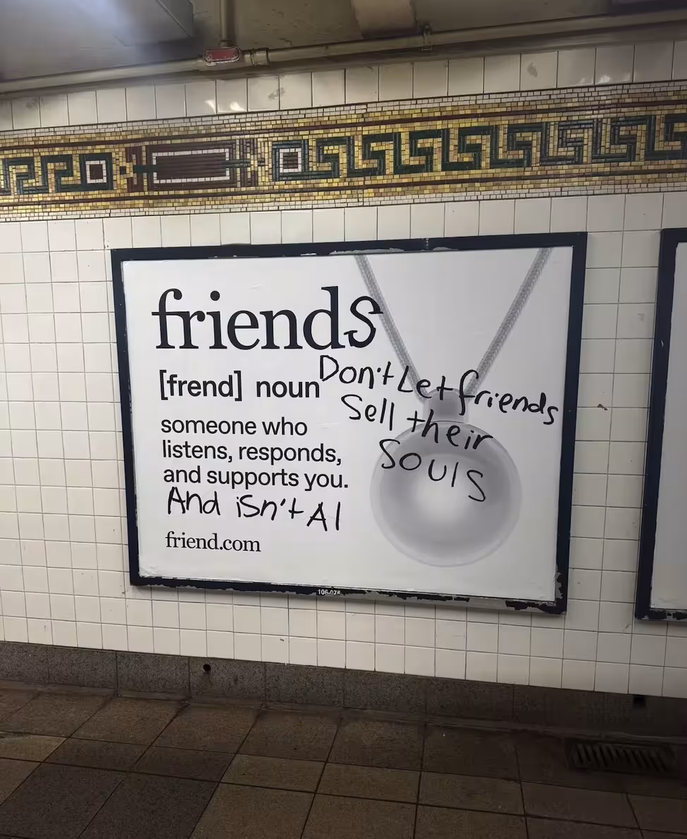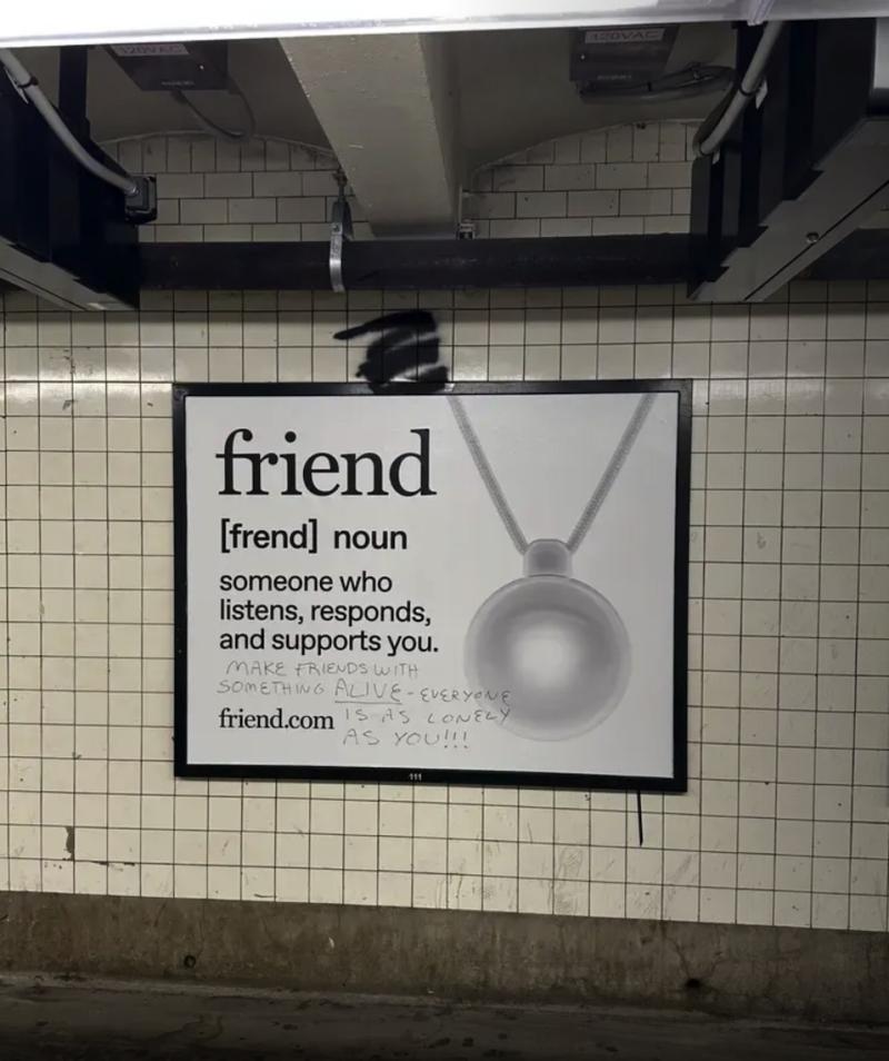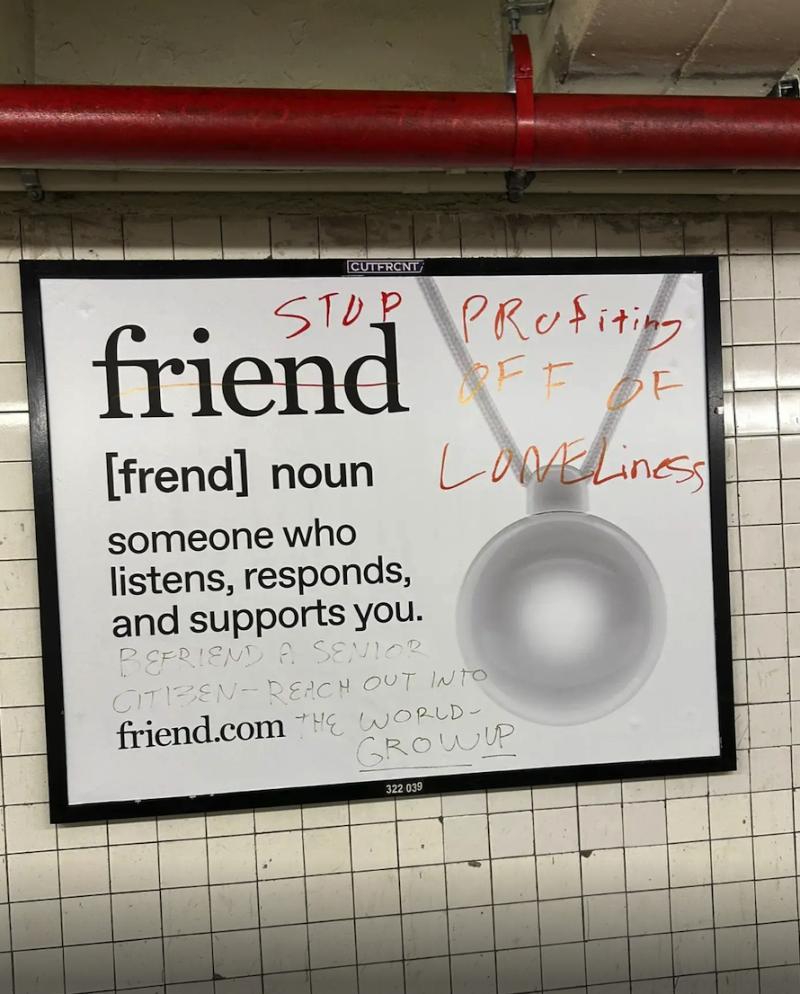 Una prueba de esta controversia estaba en acciones como una campaña de vallas publicitarias en el metro neoyorquino que fueron rápidamente vandalizadas. “Me veré la serie entera contigo”, “Nunca dejaré los platos sucios en el fregadero”, “Nunca me saltaré los planes para cenar”, te dice Friend. “XXX”, “XXX”, “XXX”, son las respuestas grafiteadas por algunos viajeros del metro.