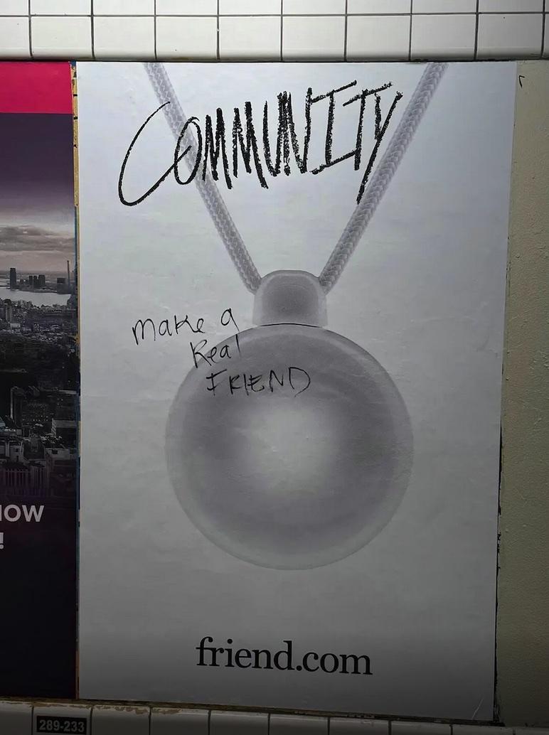 Acerca de la vandalización de su propuesta, el creador de Friend se ha mostrado muy positivo y ha declarado: “El capitalismo es el medio artístico más grande”.